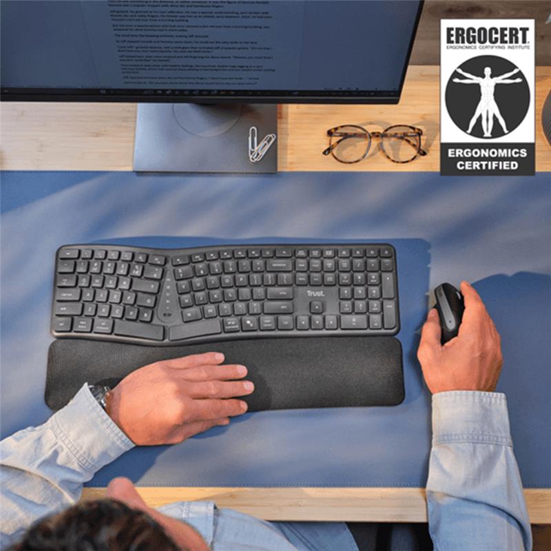 TRUST Keyra Teclado Wirel BT+ USB Ergonomico Black ES